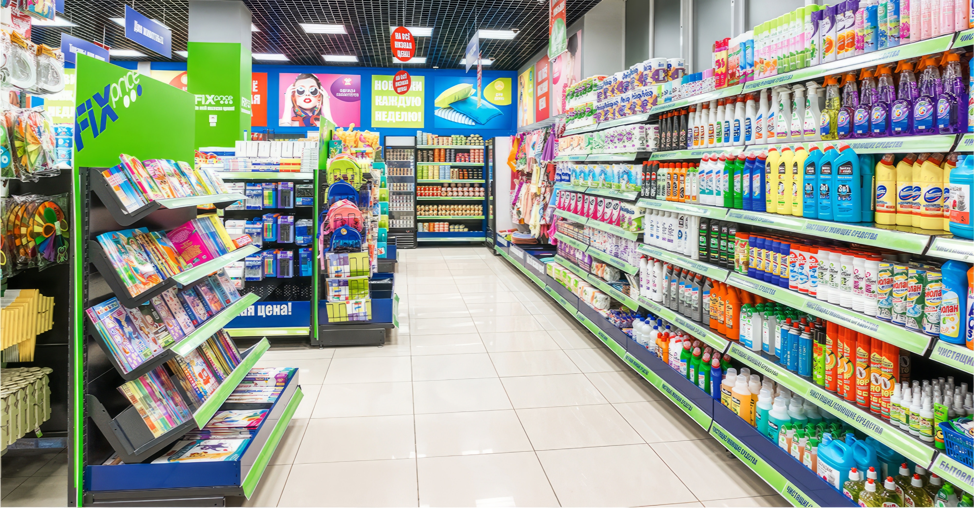 Our product range includes food products, household products, homecare chemicals, personal care products, toys, stationery, clothing and party supplies.